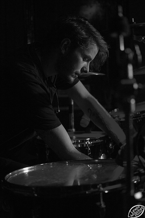 | New band member Josh Waterfield prepares his drum kit during soundcheck before Mass Spectrum's debut performance, 2 Pigs, 7/4/16. |