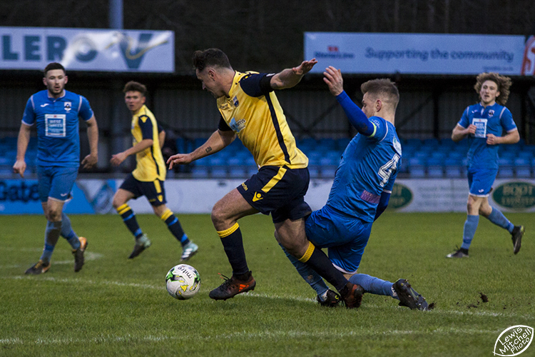 | Craig Jones opens the scoring for Port Talbot Town with a penalty against Cwmbran Celtic. Victoria Road. 6/1/18. |